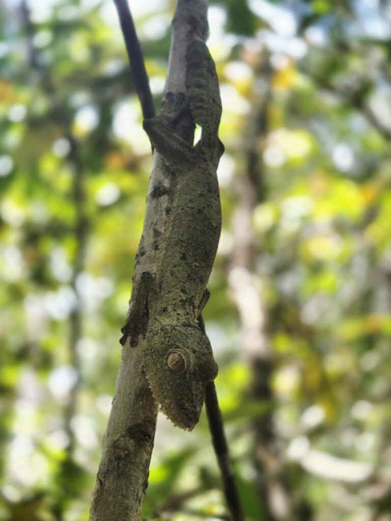 Nosy Komba – „Lemur Island“ is a small volcanic island in Madagascar, located between the island of Nosy Be and the northwestern coast of the main island of Madagascar. It is roughly circular in shape and rises sharply to a plateau and the peak of Antaninaombi in the middle of the island. The lowlands of the island are divided between secondary forest and a mosaic of farmland and plantations (mainly including shade-grown coffee), while the highlands are mainly composed of shrubland. The island experiences the severe drought typical of northwestern Madagascar and is dotted with bamboo and trees of the Fabaceae family, along with non-native mango and jackfruit. The island hosts a diverse range of reptiles and amphibians, although their abundance has been slightly reduced by deforestation in the past.