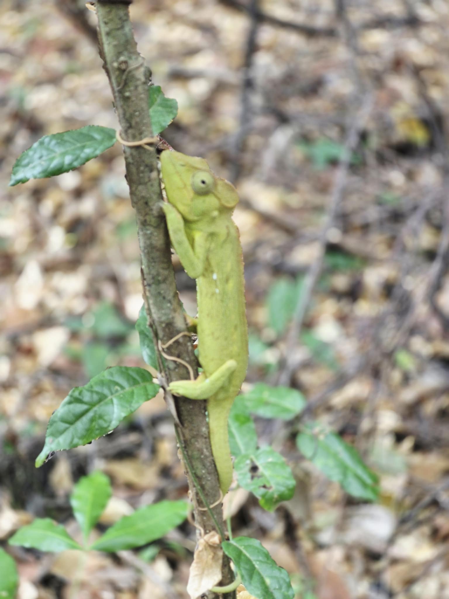 Nosy Komba – „Lemur Island“ is a small volcanic island in Madagascar, located between the island of Nosy Be and the northwestern coast of the main island of Madagascar. It is roughly circular in shape and rises sharply to a plateau and the peak of Antaninaombi in the middle of the island. The lowlands of the island are divided between secondary forest and a mosaic of farmland and plantations (mainly including shade-grown coffee), while the highlands are mainly composed of shrubland. The island experiences the severe drought typical of northwestern Madagascar and is dotted with bamboo and trees of the Fabaceae family, along with non-native mango and jackfruit. The island hosts a diverse range of reptiles and amphibians, although their abundance has been slightly reduced by deforestation in the past.